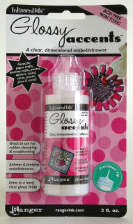 RANGER-Inkssentials Glossy Accents. An acid free; 3-D; clear gloss medium. Use to brighten; add dimensions and magnify. Place under embellishments to make them stick. Also place on top of embellishments to protect and add a glossy overlay. This package contains 2 ounces in a bottle with a precision tip. Made in USA.