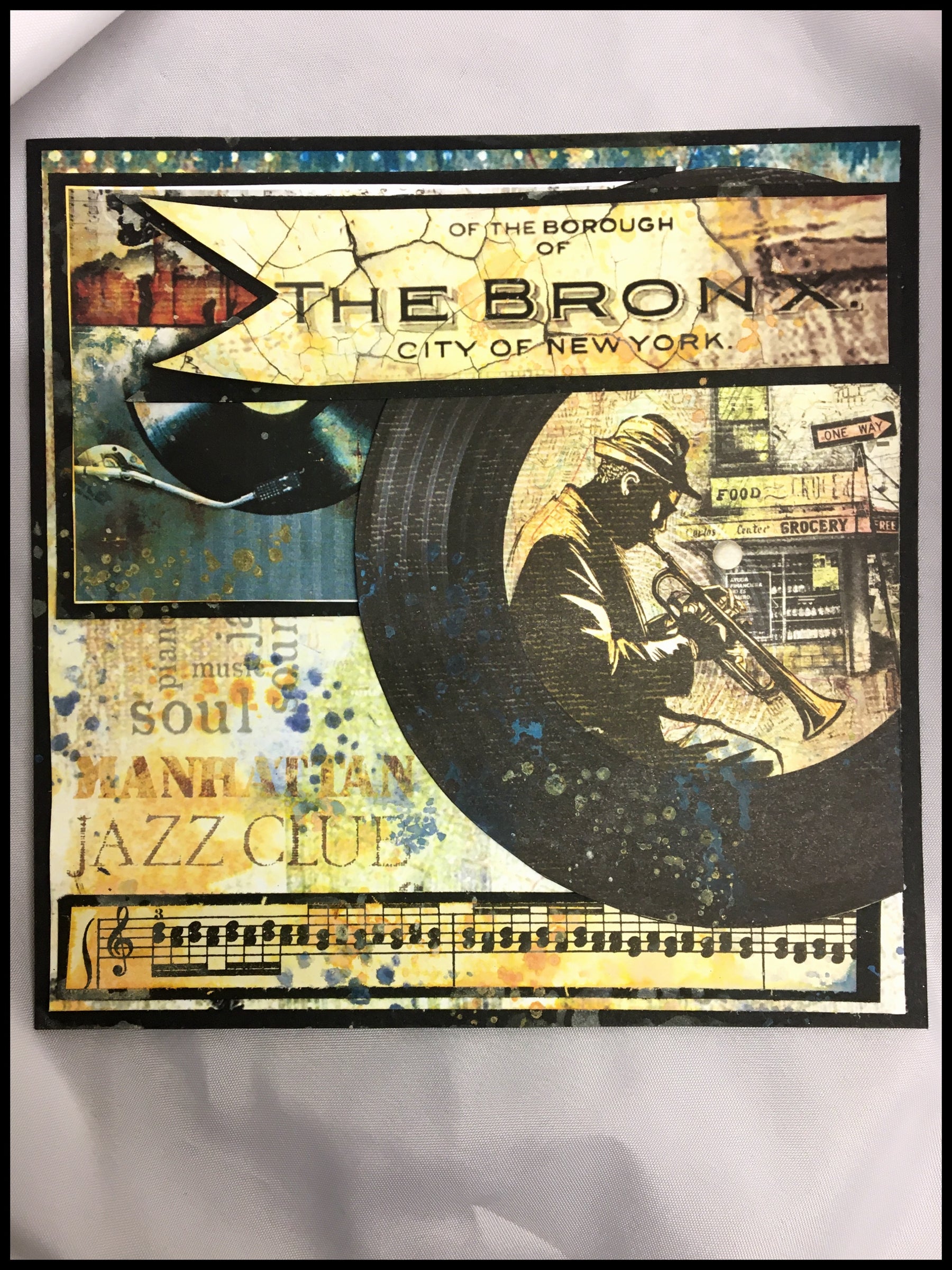 I used a black card with a white insert to make this. and I used more black card as backing for the sections I cut out of the papers. Then it was just a lot of matting and layering.