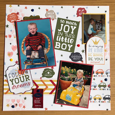 Today I'm sharing another layout for The Mad Scrapper Blog. This time it is one of my son who is now 28! As you can tell I don't scrapbook in chronological order but when the right paper catches my eye.
