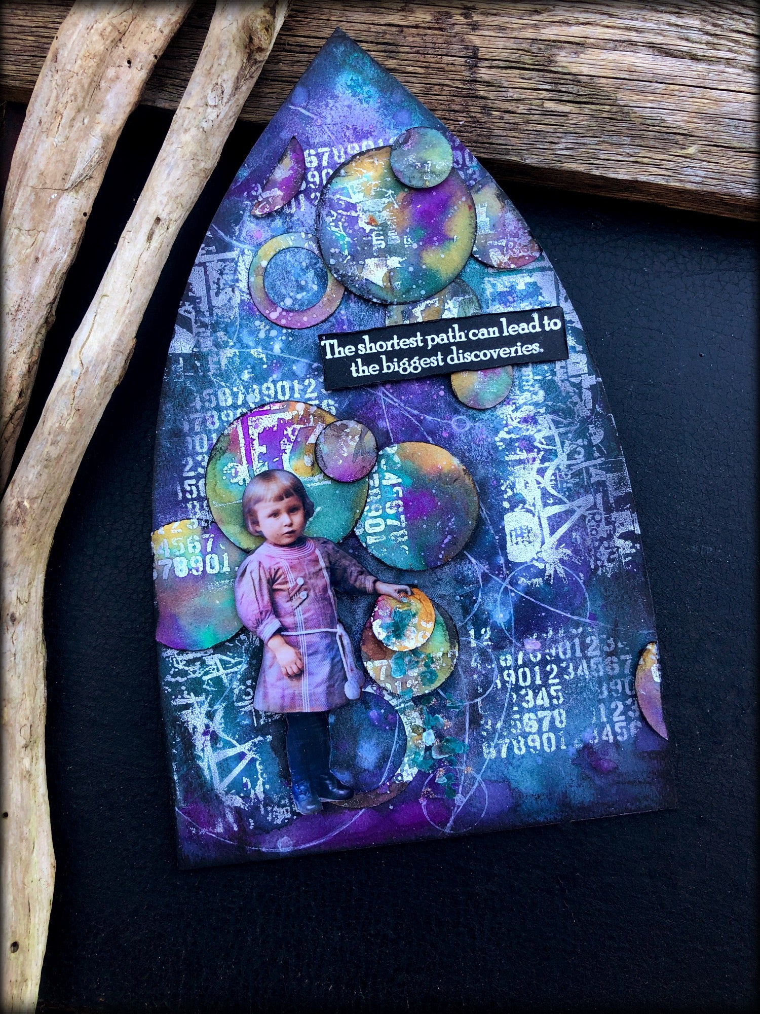 This is a piece of watercolour paper glued to a wooden arch. Of course, lots of the products have a beautiful mica shimmer to them but, sadly, photos don’t show all this beautiful sparkle.