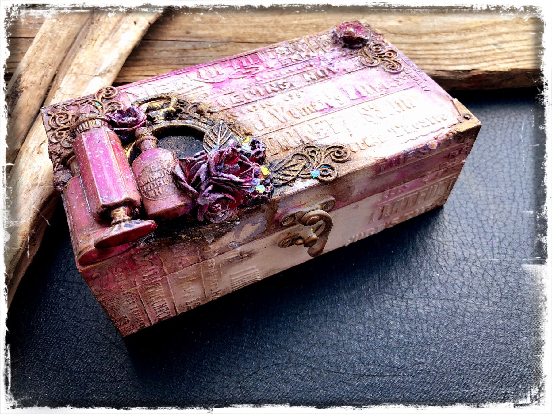 Todays project has a bit of a romantic theme to it. I wanted to use the little bottle moulds, that I used on my tin last month, in a more soft, feminine romantic way. So I went with shades of magenta and plum. Although I used lavender paint, when it blended with the magenta it went a bit more plum.