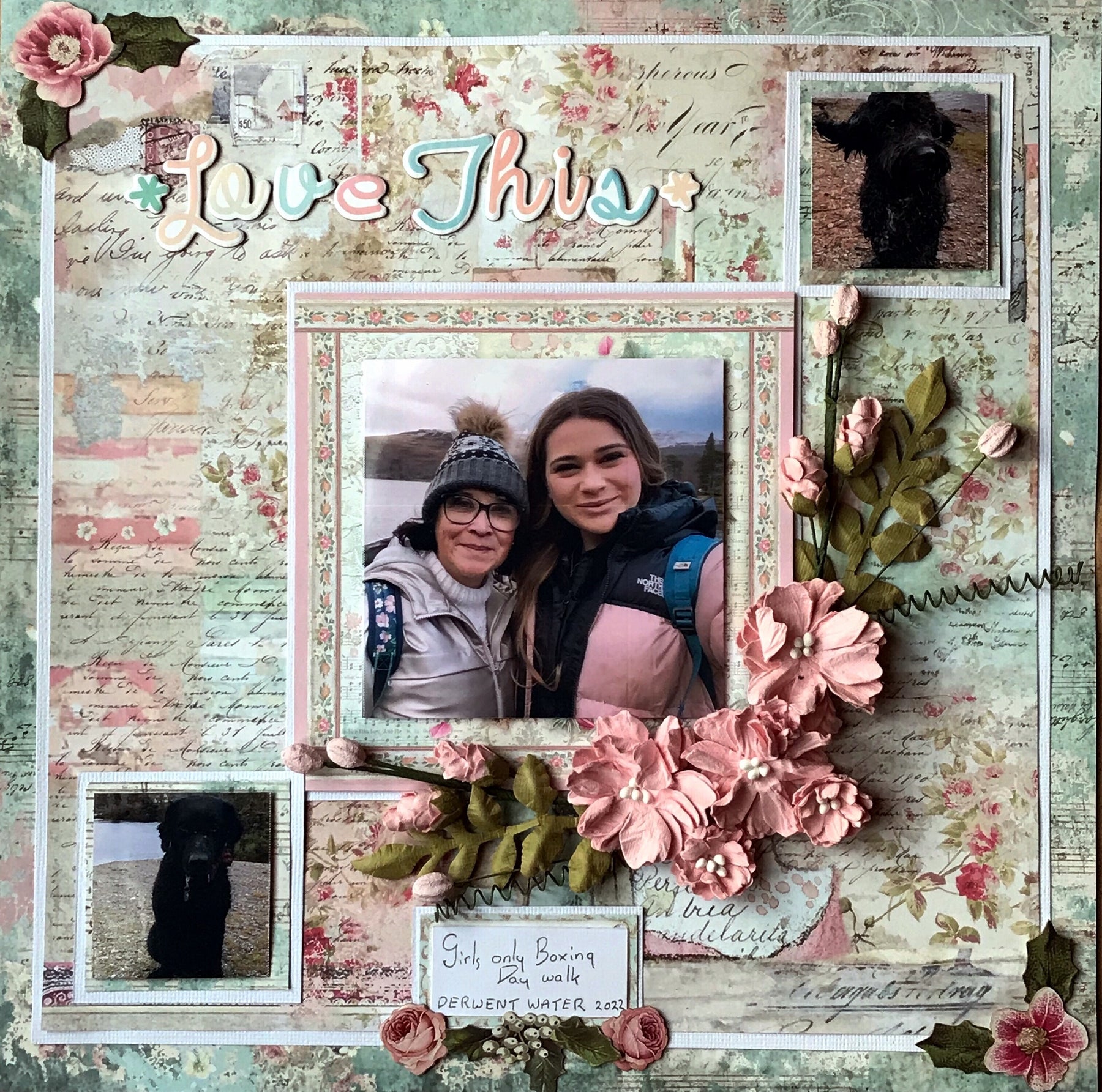 This Christmas, seven family members rented an AirBNB in the Lake District and despite the rain we enjoyed many long winter walks. The Sweet Winter papers and ephemera were perfect to document a 'girls only' walk my daughter and I had on Boxing Day around Derwent Water.