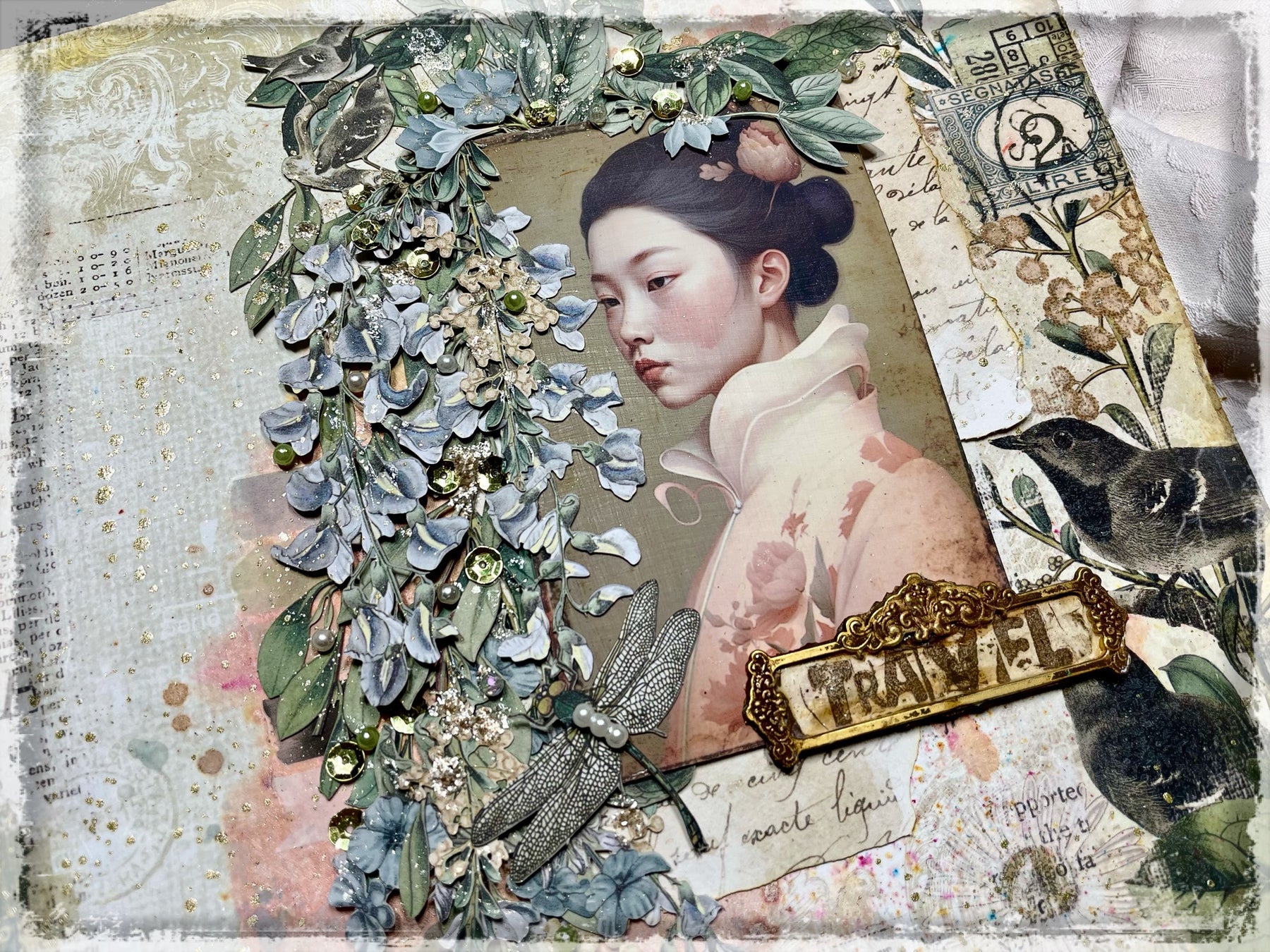 I’ve used a lot of 49 and Market “Moonlit Garden” products. The 12 x 12, laser cuts, cut outs from the 12 x 12 cut out sheet, and a few bits from the 12x12 rubon sheet.