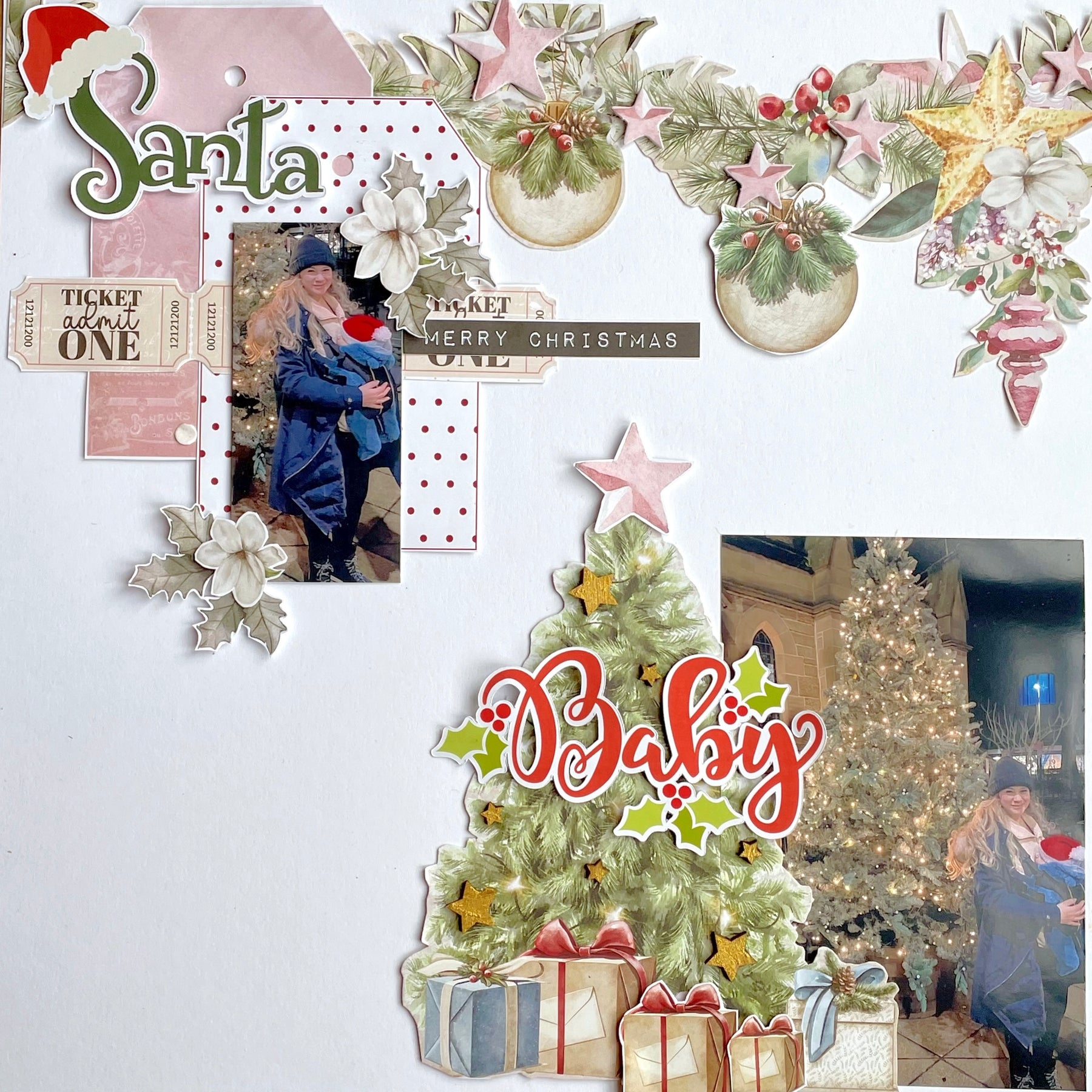 When our daughter posted this photo onto Instagram featuring her with our little grandson wearing the Santa hat I had knitted him I knew I would have to scrapbook it. She had titled the post 'Santa Baby' and I found the perfect Santa Baby title in the Silhouette Design store. I changed the cut file to a print and cut one and it made the perfect title for this layout.