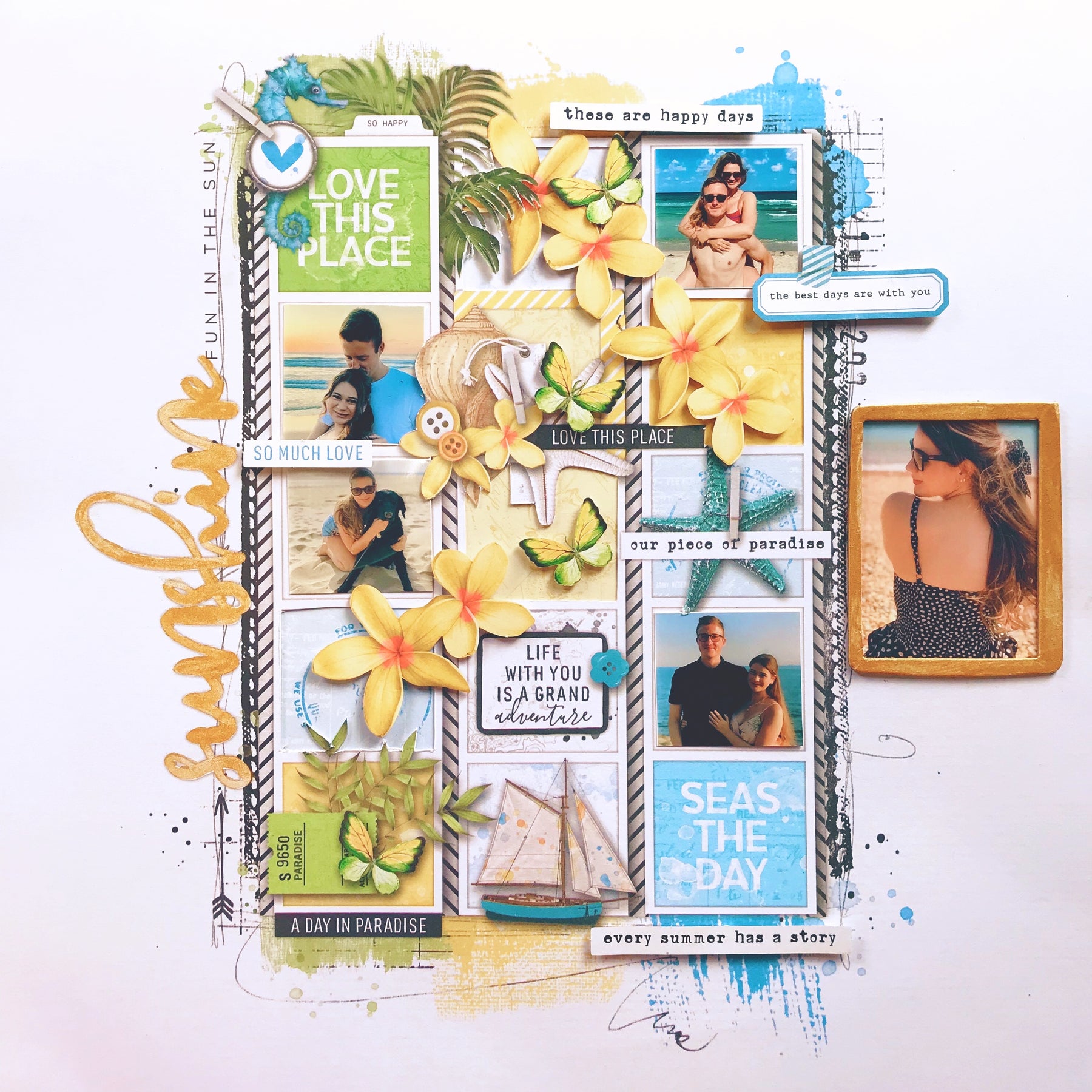 I have been dithering about getting an Ultimate Page Kit from 49 and Market for a while and when I saw the Sunburst one knew I had to have it. Initially, it was the cost that made me hesitant but I can vouch for the value for money that they are. There is more than enough to make the four pages provided with lots of product left over.
