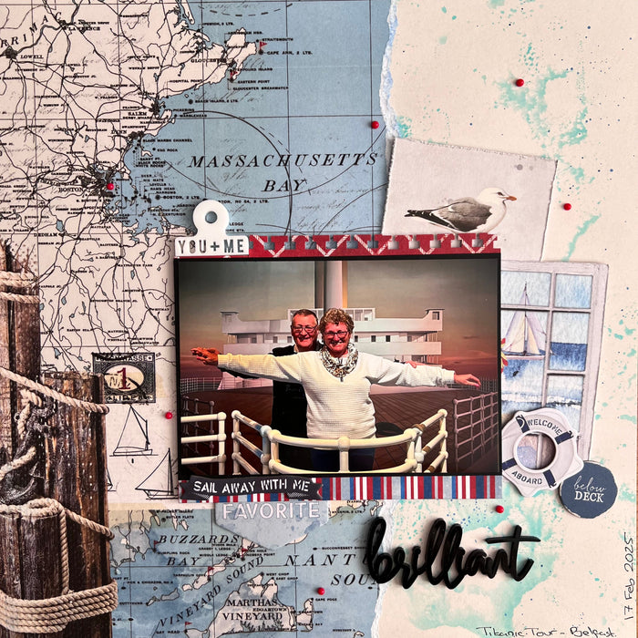In August, I didn't have the time to scrap/knit as much as I would normally as 'Life' got in the way a bit but I did manage nine layouts - five scrapped traditionally and three hybrid pages. For this layout...