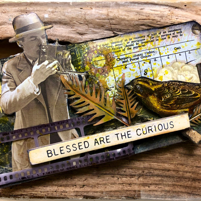 Hi there. I’ve altered this little tin as my first project for July. It’s about 5 inches tall and it was originally a 1940s (?) cigarette tin I picked up at a bric-à-brac stall for £4. It had a nice...