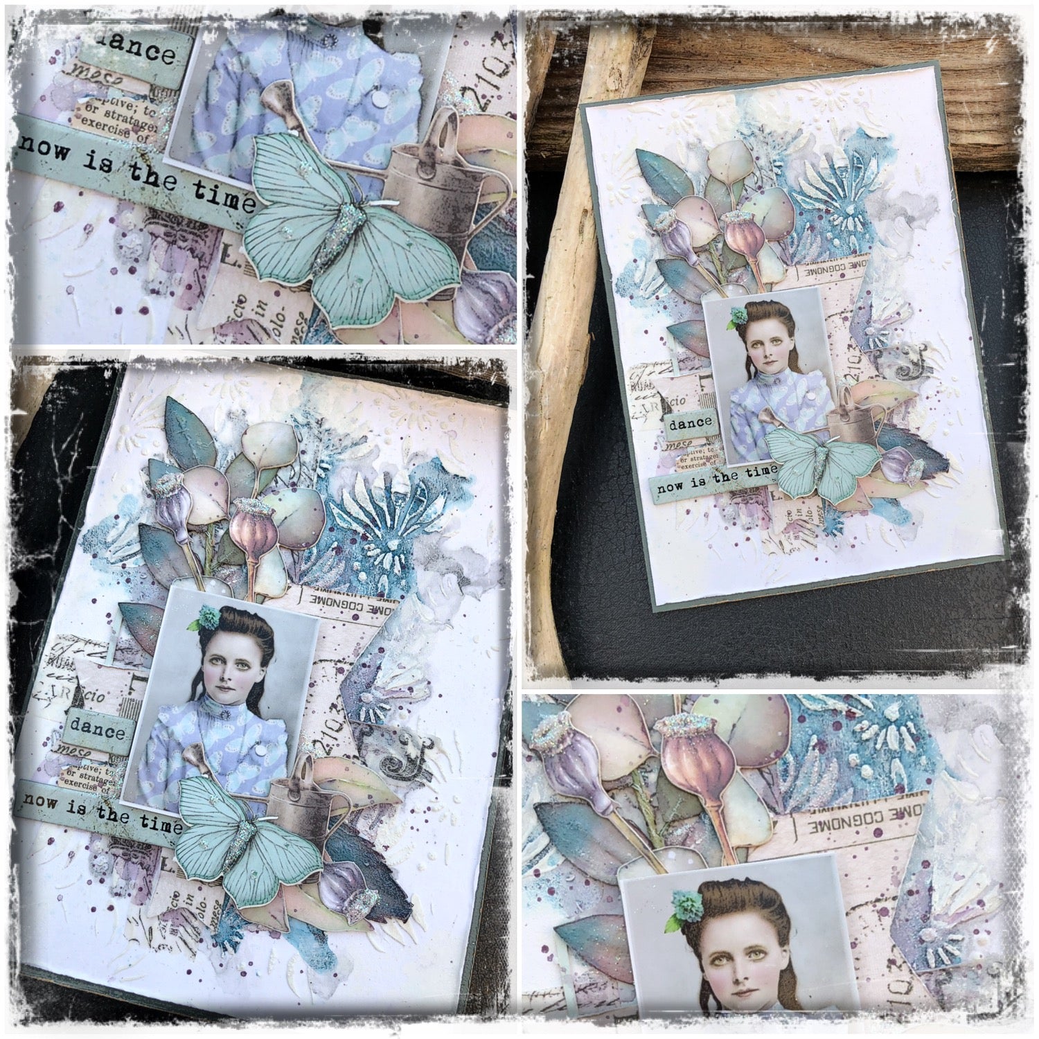 A few subtle touches of glamour dust glitter added with gel medium and the main part of the card was done. I mounted it onto a grey card which I’ve added an insert in to make it easier to leave a greeting and sign it etc.