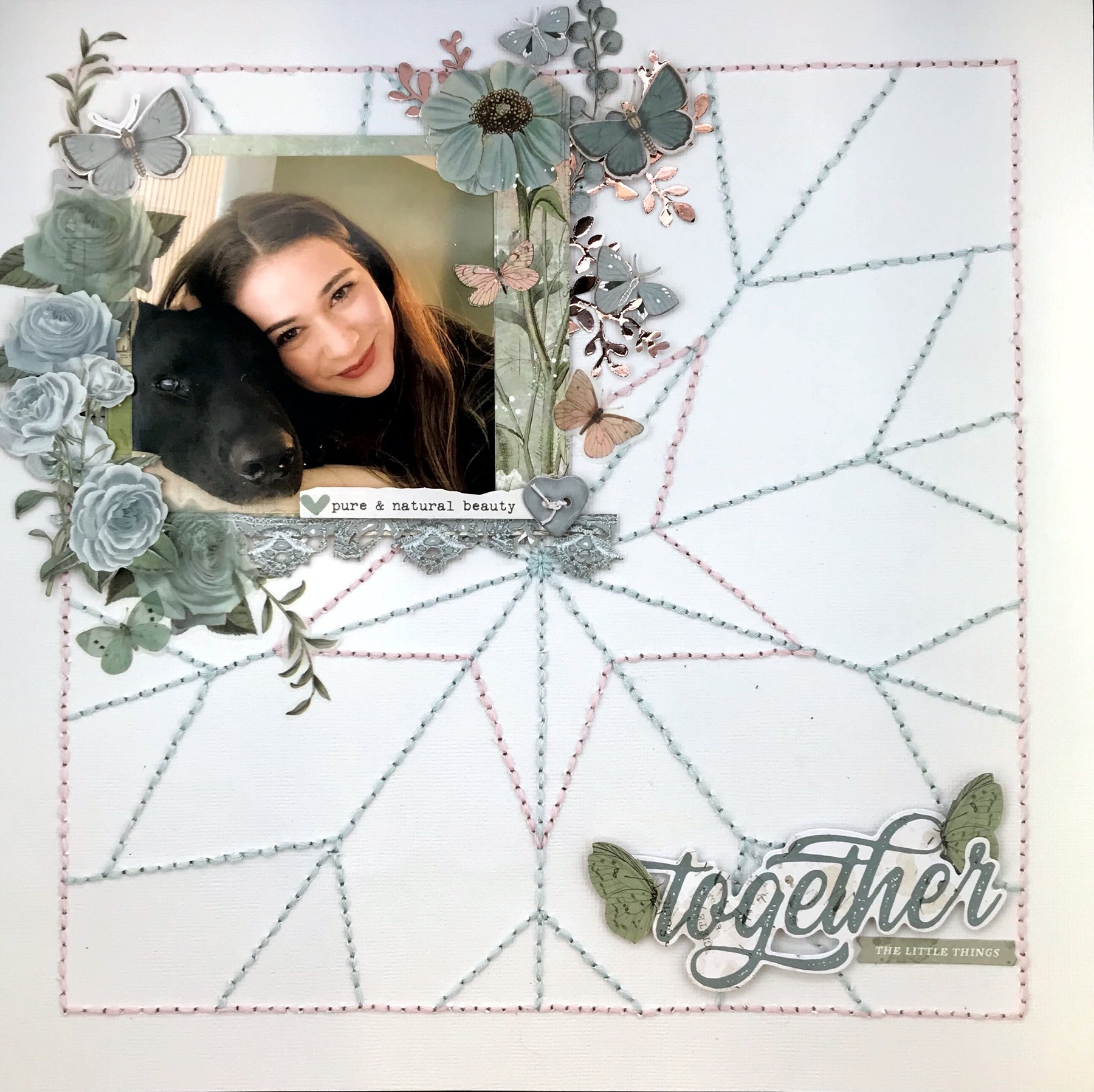 To finish I used the 'together' die cut from the pack of Tranquility ephemera and two butterflies from Tranquility laser cuts.