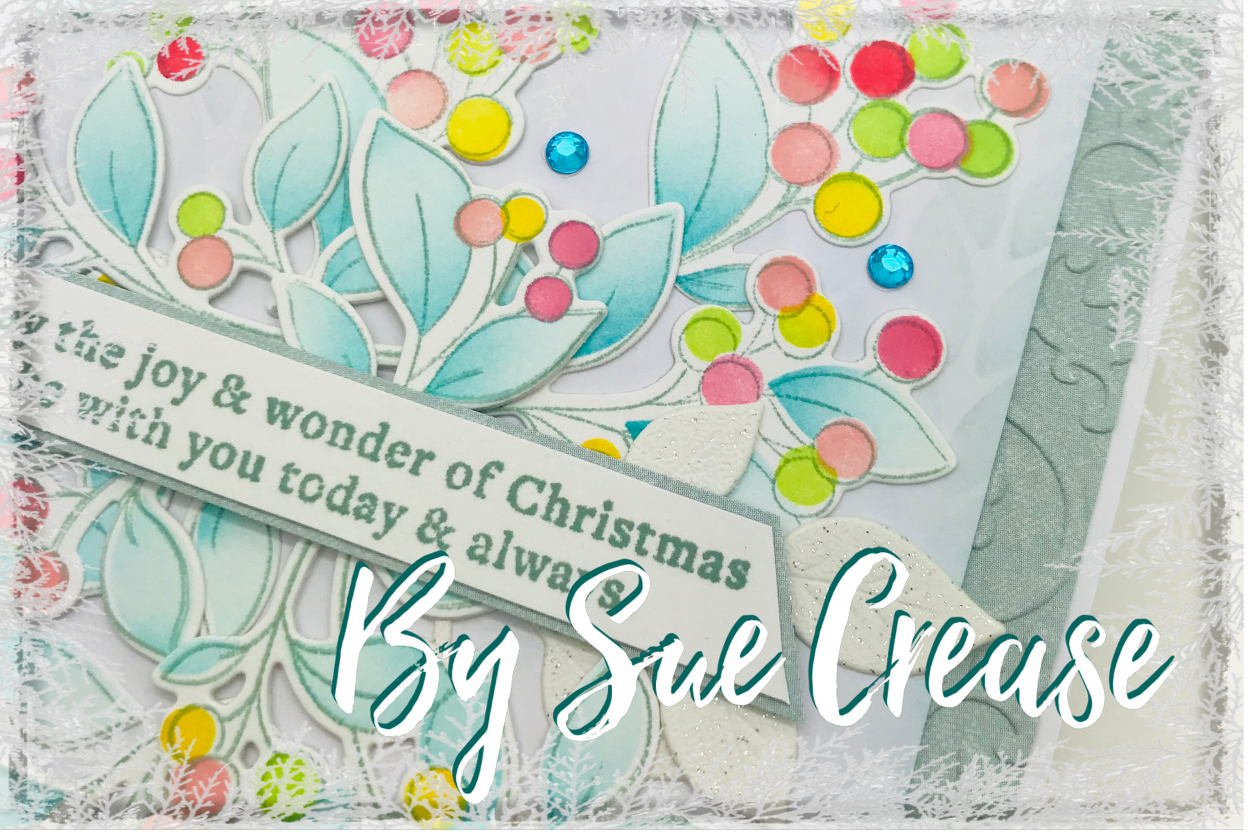 Today I am sharing a cute Christmas card I’ve made using the Pinkfresh Studio Winter Berries stamp, stencil and die set.