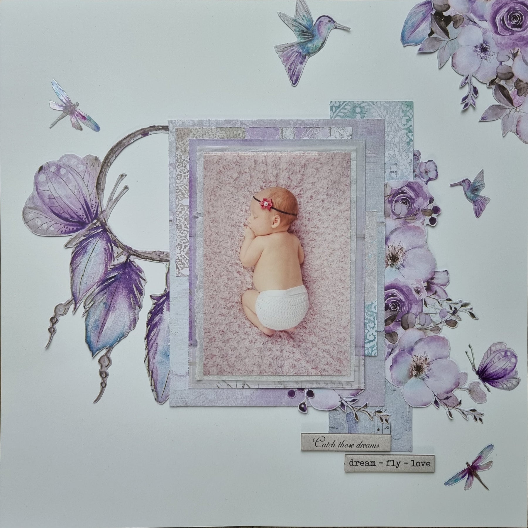 As I still have a few of these baby photos I want to scrap, I am using my kit smartly and stretching it as far as possible. For this page, I have only used the Dreamers in Love pattern paper from the Add-on Kit.