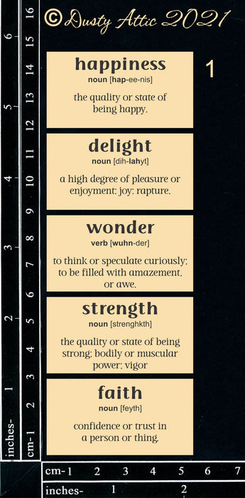 Click to expand Tap to zoom Definitions #1 by The Dusty Attic Save £-3.15 £3.15 | / 1 2 3 4 5 6 7 8 9 10+ Quantity Quantity Add to cart This item is a recurring or deferred purchase. By continuing, I agree to the cancellation policy and authorize you to charge my payment method at the prices, frequency and dates listed on this page until my order is fulfilled or I cancel, if permitted. Cut from 1.8mm chipboard