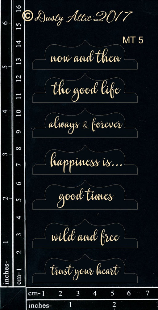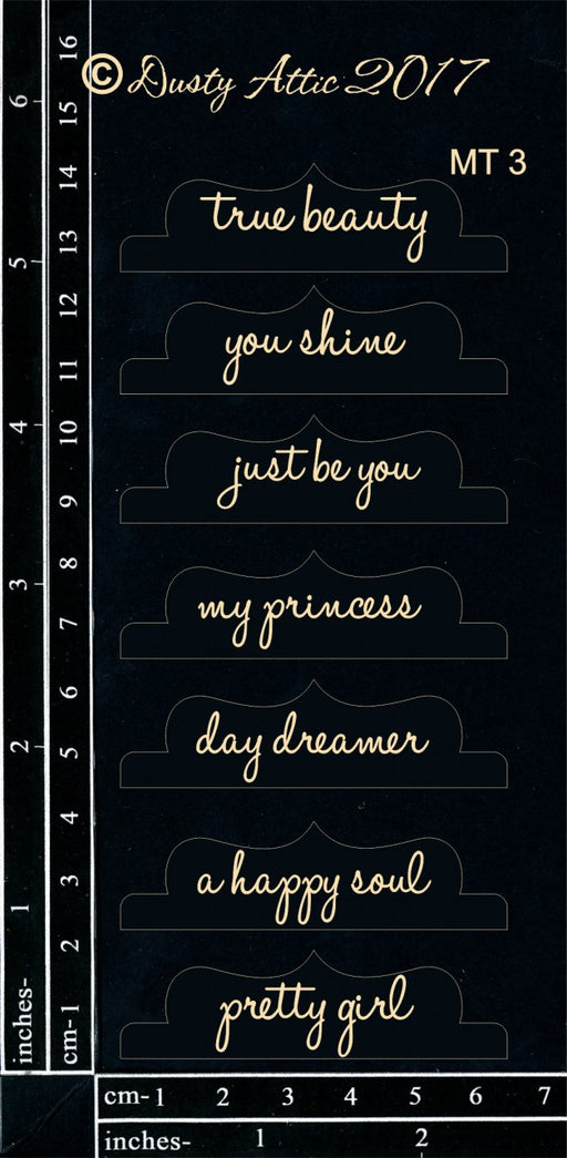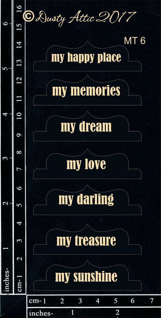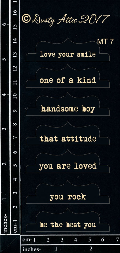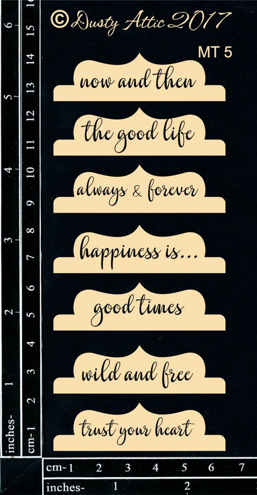 The Dusty Attic£2.95| /5 pieces per packDesign is approx. 7cm x 2cmcut from 1.8mm chipboard