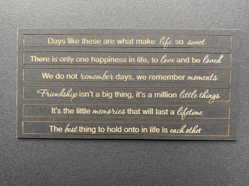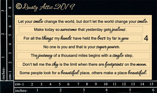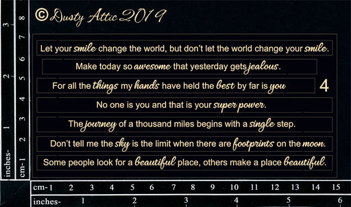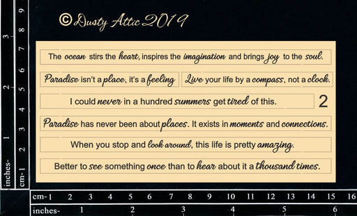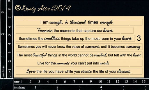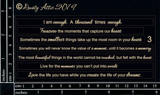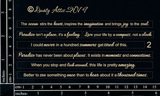 The Dusty Attic£3.90| /A 15cm x 7cm chipboard piece with 7 individual black chipboard phrases.