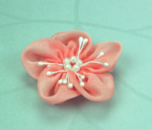 Green Tara£1.20| /Satin Rosette 5cm Satin and Pearl Single Flower - Burnt Orange