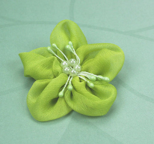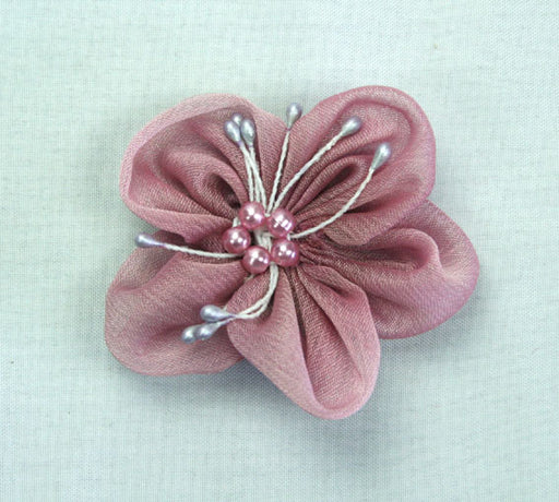 Green Tara£1.20| /Satin Rosette 5cm Satin and Pearl Single Flower - Amethyst