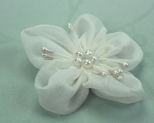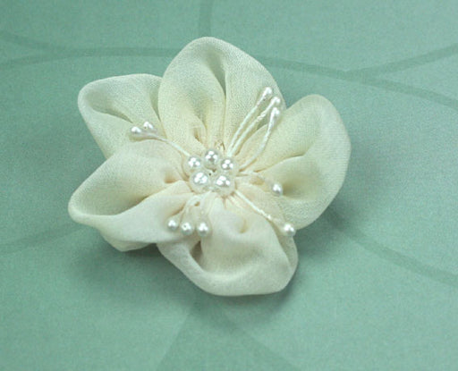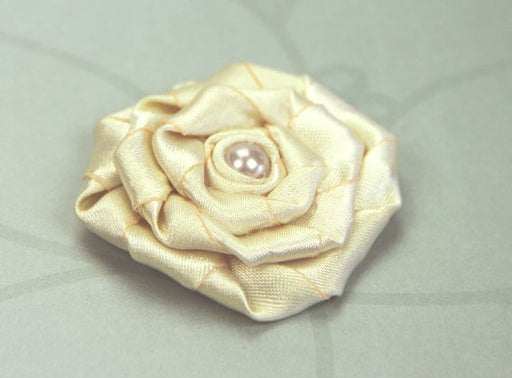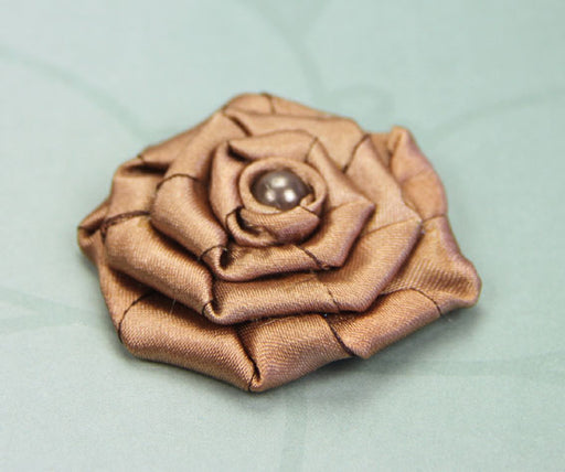 Green Tara£1.20| /Satin Rosette 5cm Satin and Pearl Single Flower - Mushroom