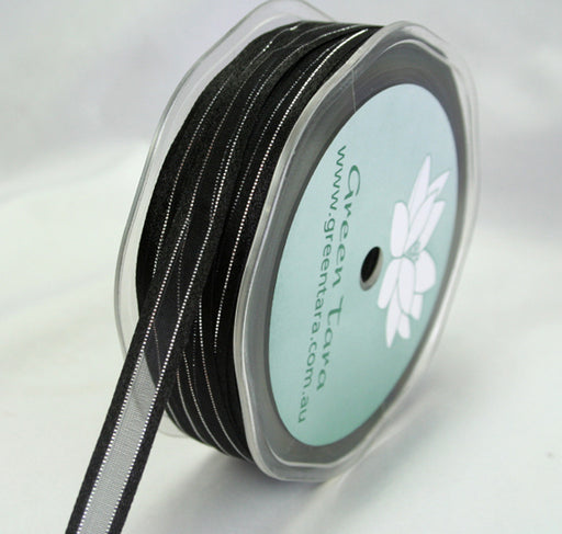 Satin Metallic Edged Organza - Black/Silver