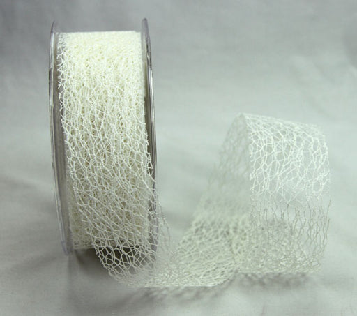 Green Tara£0.95| /38mm Ivory Mesh Ribbon. Ideal for cardmaking, scrapbooking, wedding invitations, florists, cake decorating and all craft projects. Sold by the yard.