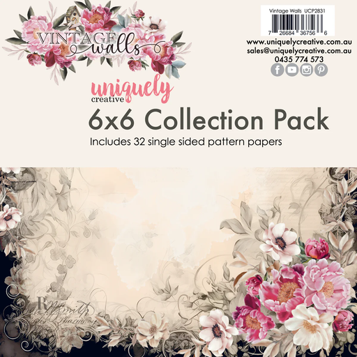 Uniquely Creative£9.99| /UCP2831 Vintage Walls 6 x 6 Collection Pack There are 32 single sided, 6x6 papers in each Collection Pack, 2 of each of the 16 papers. Uniquely Cre...