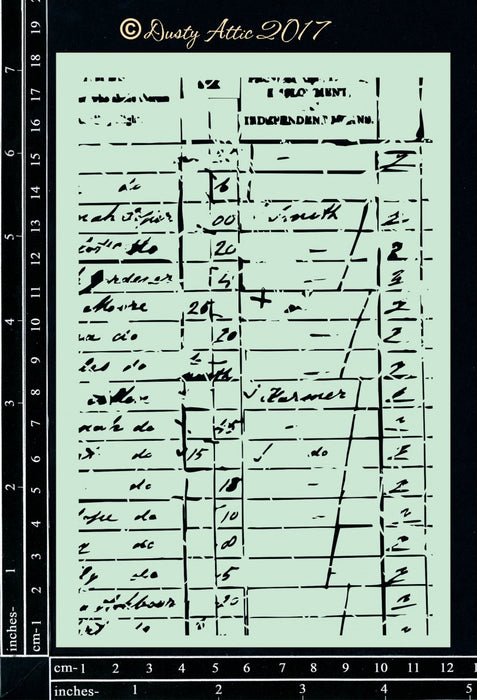 Click to expand Tap to zoom Dusty Attic Ledger Stencil by The Dusty Attic Save £-3.99 £3.99 | / 1 2 3 4 5 6 7 8 9 10+ Quantity Quantity Add to cart This item is a recurring or deferred purchase. By continuing, I agree to the cancellation policy and authorize you to charge my payment method at the prices, frequency and dates listed on this page until my order is fulfilled or I cancel, if permitted. 5" x 7" Stencil