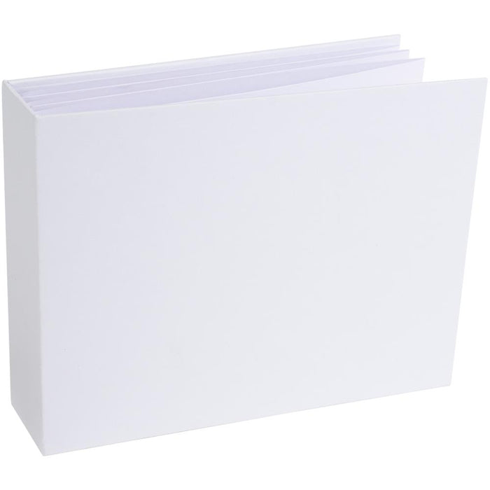 The 2 inch Landscape chipboard album comes with 3 attached flip pages (open: 16.5 x 6.25 inches, closed 8.25 x 6.25 inches). Outer dimension 8.5 inches wide x 6.5 high inches x 2 inches deep. Each page is spaced with plenty of room to add layers and texture so that you can create your own unique album. Imported.