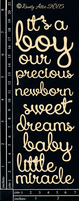 Click to expand Tap to zoom It's a Boy by The Dusty Attic Save £-2.95 £2.95 | / 1 2 3 4 5 6 7 8 9 10+ Quantity Quantity Add to cart This item is a recurring or deferred purchase. By continuing, I agree to the cancellation policy and authorize you to charge my payment method at the prices, frequency and dates listed on this page until my order is fulfilled or I cancel, if permitted. Cut from 1.8mm chipboard.