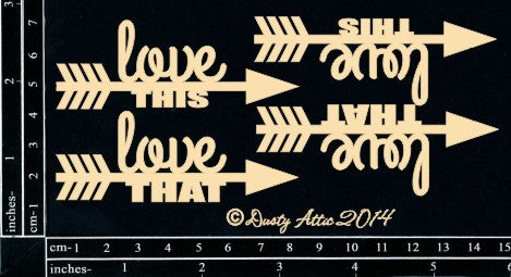 Click to expand Tap to zoom Love this, Love that arrows by The Dusty Attic Save £-2.80 £2.80 | / 1 2 3 4 5 6 7 8 9 10+ Quantity Quantity Add to cart This item is a recurring or deferred purchase. By continuing, I agree to the cancellation policy and authorize you to charge my payment method at the prices, frequency and dates listed on this page until my order is fulfilled or I cancel, if permitted. Cut from 1.8mm chipboard.