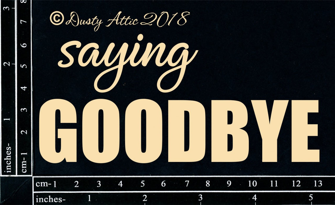 Click to expand Tap to zoom Saying Goodbye by The Dusty Attic Save £-2.10 £2.10 | / 1 2 3 4 5 6 7 8 9 10+ Quantity Quantity Add to cart This item is a recurring or deferred purchase. By continuing, I agree to the cancellation policy and authorize you to charge my payment method at the prices, frequency and dates listed on this page until my order is fulfilled or I cancel, if permitted. Cut from 1.8mm chipboard