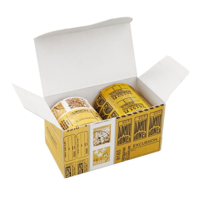 Ticket Essentials are the perfect addition to any project. The vintage ephemera pieces are die-cut to create various ticket shapes and sizes. Bend at perforation and careful tear apart for countless pieces. Each box contains a total of 3 rolls in coordinating shades, 5 meters each roll. One roll is perforated stamps (22mm wide). Two rolls of tickets (22mm and 46mm wide). Comes in a variety of colors. Each sold separately. Imported.