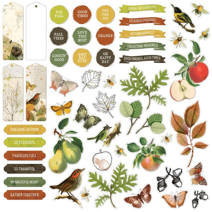Embrace the warmth of fall with these vintage-inspired chipboard die cuts. Motifs include apples, laves, birds, word disks, labels and more! Perfect for adding a touch of nostalgia to your scrapbooks, cards, journals, and other autumnal creations, these charming embellishments are thin yet durable.